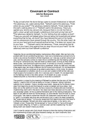 Yesterday the air-conditioning/heating maintenance office called. After we had a big problem with the air conditioning last year, I took out a maintenance contract to try to avoid a recurrence of problems of that magnitude, so I now pay a certain amount per year, and the company comes to check the air conditioning and the heating system. As long as I continue to pay, they will show up twice a year; as long as they show up twice a year, I will continue to send the check. A contract is a mutual, conditional commitment of that kind. It’s different from a covenant. When my wife and I married a few weeks ago, we made a different kind of mutual commitment. It’s not dependent on whether one of us continues to be able to write checks; it’s for richer, for poorer. It’s not dependent on whether one of us is sick and unable to fulfill all the roles one might expect of a husband or wife; it’s in sickness and in health. It’s not dependent on the feelings of one or the other person; it’s till death do us part. Is God’s relationship with us more like a contract or more like a covenant?...