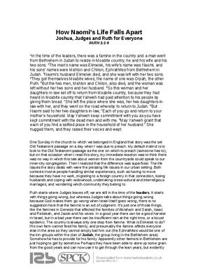 So Naomi can go home, and she really has little alternative; otherwise, what are a woman and her daughters-in-law to do? All she can do is go back to Bethlehem where the abandoned family farm still is, with her tail between her legs, as humiliated and saddened when she returns as she was when she left, ready for the women to be whispering, “You see; they thought they were being so clever going to Moab to escape the famine, and see where it got them.”