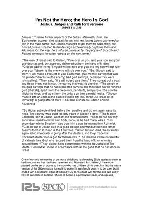 One of my fond memories of our sons’ childhood is of reading Bible stories to them at bedtime, stories that had been rewritten and illustrated for children; I have now passed on the set of books to the son who has children of his own. My favorite was a version of the Gideon story turned into poetry. It was feeble poetry, to be sure, but it ended with a profound piece of theology. My sons would wait for this line and knew how to complete it. Gideon refuses to become a permanent ruler, and explains,..