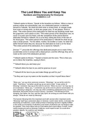 “Bless you,” we say when someone sneezes. “Blessings,” we put at the end of e-mails. “God bless,” my father would say as we went to bed. “It was a time of blessing,” someone may say at the end of a service. “Bless my soul,” we may say as an exclamation. “Bless you,” I sometimes say at the end of a phone conversation. “It was a blessing in disguise,” we may say when something unpleasant turns out to be beneficial. And at the end of a church service, I proclaim, “The blessing of God Almighty, the Father, the Son, and the Holy Spirit, be among you and remain with you always.” What do we mean by blessing?...