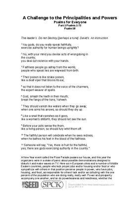 A New Year event called the Rose Parade passes our house, and this year the organizers were in a state of panic about possible demonstrations designed to disturb it and make waves on TV. Here as in European cities and a number of Middle Eastern countries, people who lack proper jobs and/or housing and/or food or who sympathize with others in that position perceive people in power, who have jobs, housing, and food, as responsible for others’ lack and/or as colluding with the one percent of the population who are doing really, really well. Power and prosperity accompany one another, and so do powerlessness and neediness, whether the people in power were democratically elected or rule as unelected autocrats. Admittedly the protesters may exaggerate the extent to which the people in power are in a position to do something about their needs, and they may underestimate the forces that constrain rulers of goodwill who do care about their people. When the New Testament talks about these dynamics, it sometimes refers to powers and authorities (principalities and powers, in the King James Version) in a way that might suggest that there is something supernatural about them. This fits our sense that the dynamics of order and disorder in our world seem more than merely human...