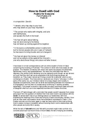 Being in someone’s tent or staying with someone implies abiding in a place of security and provision. So what kind of person must you be to enjoy that security of living in God’s tent? The answer comes in a sequence of unusual three-part lines. Parallelism won’t work with three-part lines. They keep surprising us with their third part, and thus making us think some more.