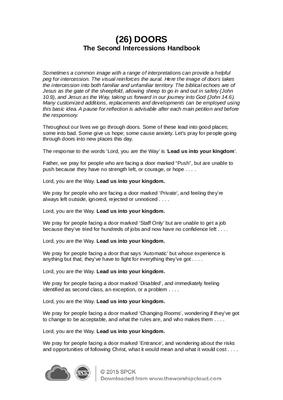 Sometimes a common image with a range of interpretations can provide a helpful peg for intercession. The visual reinforces the aural. Here the image of doors takes the intercession into both familiar and unfamiliar territory…