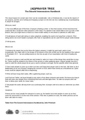 The visual impact of a small, bare ‘tree’ can be considerable. Like a Christmas tree, it can be the bearer of our prayers, and the act of writing and hanging a prayer on the tree can be a satisfying way of participating in prayer for all ages…