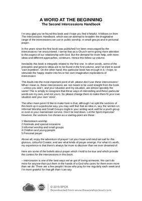 I’m very glad you’ve found this book and I hope you find it helpful. It follows on from The Intercessions Handbook, which was an attempt to broaden the imaginative range of the intercessions we use in public worship, in small groups and in personal prayer…