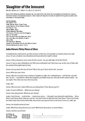 Each of the following sketches (scenes) can be used to form the basis for a complete act of worship or used as individual scenes on separate occasions. Each scene will require a narrator to read the linking text as well as the characters in the scene itself.