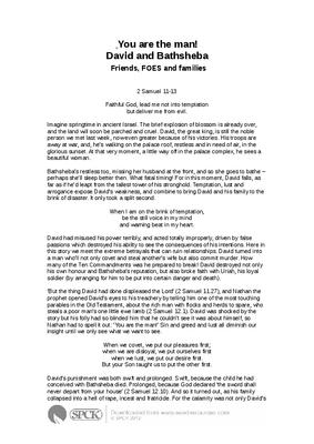 Imagine springtime in ancient Israel. The brief explosion of blossom is already over, and the land will soon be parched and cruel. David, the great king, is still the noble person we met last week, now even greater because of his victories. His troops are away at war, and, he’s walking on the palace roof, restless and in need of air, in the glorious sunset. At that very moment, a little way off in the palace complex, he sees a beautiful woman...