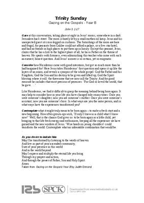 Gaze at this conversation, taking place at night in Jesus’ rooms, somewhere in a dark Jerusalem back street. The room is barely lit by a small earthen oil lamp. Jesus and his unexpected guest sit cross-legged on cushions. The furnishings of the room are bare and frugal, for peasants from Galilee could not afford a palace, or a five-star hotel, and had no friends in high places to put them up in luxury. Except this peasant, Jesus, claims that he has a link to the highest place of all; he has a Father on the throne of heaven. He speaks with firmness, even admonishing this teacher who came with such an earnest, honest question. And Jesus’ answer is so certain, yet so enigmatic...