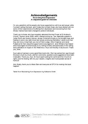 I’m very grateful to all the people who have supported me with love and prayer while I’ve been writing this book, and I’d also like to thank those who have shared with me some of their experiences of suffering from depression and recovering from that illness. Names have been changed to protect individuals...