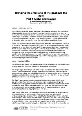 We talked earlier about James, whom we first met earlier. Although with the support of a counsellor James tried to identify the reason for his intense grief on hearing music, he was unable to do so. He was aware, however, that he held on to that grief and thought it would be a weakness in him to ‘give in’ to it and weep. Eventually he understood that although he didn’t know what lay behind it, his grief was very real and needed to be expressed in a way that had not been possible until now...