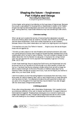 In this chapter we’re going to be reflecting on the huge issue of forgiveness. Because this is such a vast subject I’m focusing here on forgiveness in relation to the ‘hidden things’ that might lie behind depression and which we’ve been talking about in this book. Having said that, I hope these reflections may have something to offer others too...