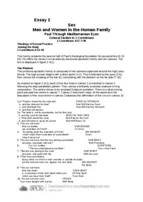 This homily presents the second half of Paul’s theological foundation for sexual ethics (6:13-20). He offers his views in a marvellously structured apostolic homily with ten cameos. The text is displayed in figure 2.4(1)…