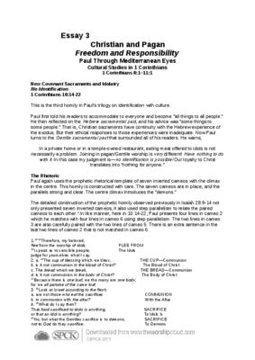 This is the third homily in Paul’s trilogy on identification with culture. Paul first told his readers to accommodate to everyone and become “all things to all people.” He then reflected on the Hebrew sacramental past, and his advice was “some things to some people.” That is, Christian sacraments have continuity with the Hebrew experience of the exodus. But their ethical responses to those experiences were inadequate. Now Paul turns to the Gentile sacramental past that surrounded all of his readers…