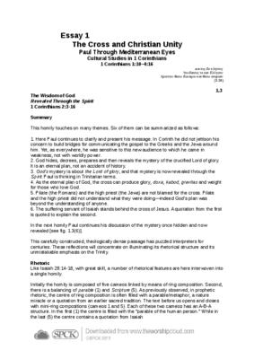 This homily touches on many themes. Six of them can be summarized as follows: 1. Here Paul continues to clarify and present his message. In Corinth he did not jettison his concern to build bridges for communicating the gospel to the Greeks and the Jews around him. Yet, as everywhere, he was sensitive to this new audience to which he came in weakness, not with worldly power…