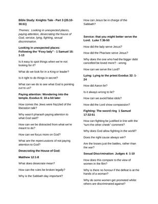 A Bible Study series based around themes from the film Knight's Tale. It includes a series of questions linked to a variety of verses aimed to provoke discussion and thought about a wide range of themes.