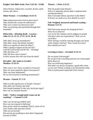 A Bible Study series based around themes from the film Knight's Tale. It includes a series of questions linked to a variety of verses aimed to provoke discussion and thought about a wide range of themes. This is the fifth part and runs from the second chapel scene until William learns to dance.