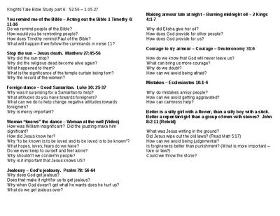 A Bible Study series based around themes from the film Knight's Tale. It includes a series of questions linked to a variety of verses aimed to provoke discussion and thought about a wide range of themes.