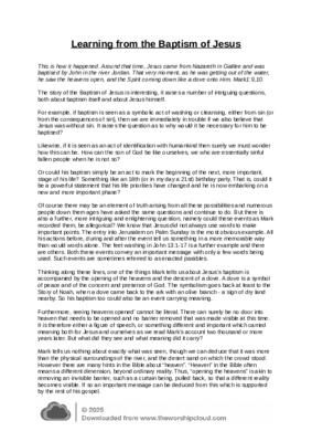 This reflection/sermon (900 words) considers a number of understandings of the Baptism of Jesus. The possibility that it could, at least partially, be allegorical is examined, and conclusions drawn. How such a consideration can have a devotional and lifestyle impact is suggested.