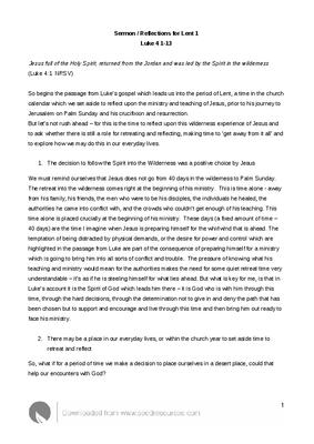 Reflection on Luke 4: 1 - Jesus is led into the Wilderness