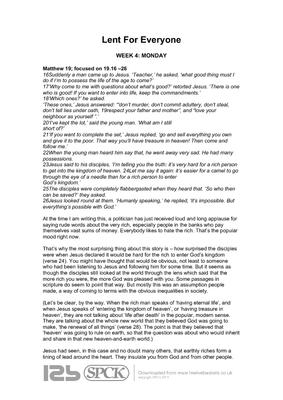 At the time I am writing this, a politician has just received loud and long applause for saying rude words about the very rich, especially people in the banks who pay themselves vast sums of money. Everybody likes to hate the rich. That’s the popular mood right now. That’s why the most surprising thing about this story is – how surprised the disciples were when Jesus declared it would be hard for the rich to enter God’s kingdom (verse 24). You might have thought that would be obvious, not least to someone who had been listening to Jesus...