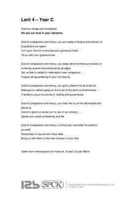 God our refuge and stronghold We put our trust in your salvation. God of compassion and mercy, you are ready to forgive and restore us long before we repent. Turn your Church to emulate your generous heart . . .