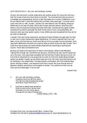 LENT HYMN MEDITATION 3 - Based on the Hymn 'Ah! Lord, with trembling I confess' by Charles Wesley.