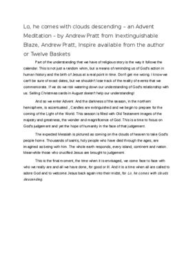 Lo, he comes with clouds descending – an Advent Meditation Taken from the book Inextinguishable blaze