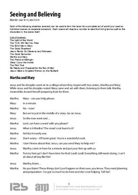Each of the following sketches (scenes) can be used to form the basis for a complete act of worship or used as individual scenes on separate occasions. Each scene will require a narrator to read the linking text as well as the characters in the scene itself.
