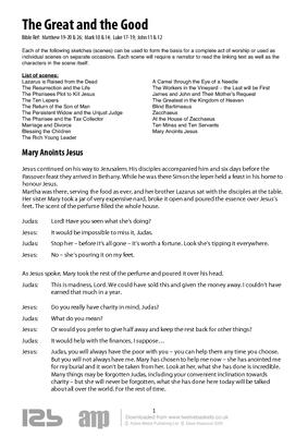 Each of the following sketches (scenes) can be used to form the basis for a complete act of worship or used as individual scenes on separate occasions. Each scene will require a narrator to read the linking text as well as the characters in the scene itself.