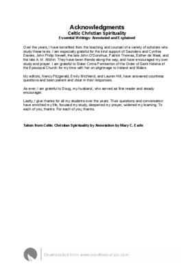 Taken from Celtic Christian Spirituality by Annotation by Mary C. Earle