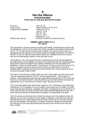 They have been in the story all along, but silent and invisible, unnamed like the woman with her alabaster jar, until now. Even once some of them are named, at the death and the burial (15.40 – 41, 47), still they are motionless and voiceless…