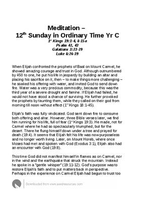 Meditation – 12th Sunday in Ordinary Time Yr C