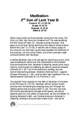 Meditation- 2nd Sun of Lent Year B