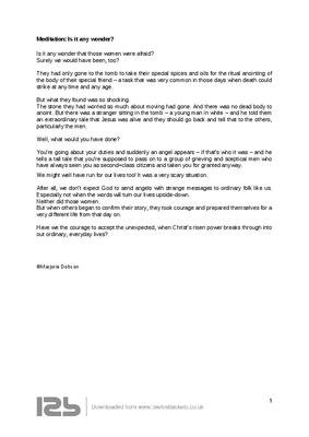 The stone they had worried so much about moving had gone. And there was no dead body to anoint. But there was a stranger sitting in the tomb – a young man in white – and he told them an extraordinary tale that Jesus was alive and they should go back and tell that to the others, particularly the men.