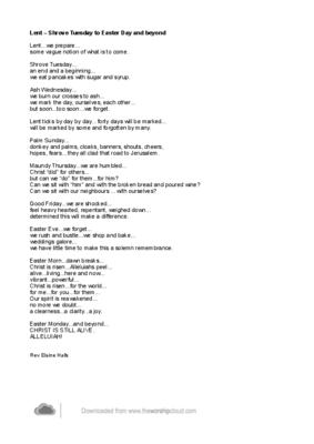Lent – Shrove Tuesday to Easter Day and beyond