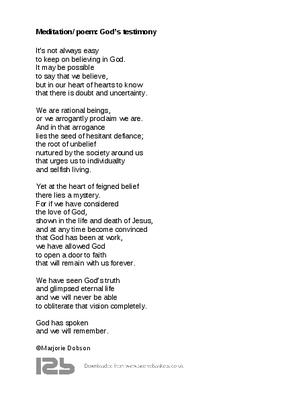 Meditation/ poem: God’s testimony