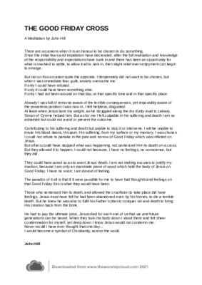 But not on this occasion quite the opposite. I desperately did not want to be chosen, but when I was, immediate fear, guilt, anxiety overcame me. If only I could have refused, if only it could have been something else. If only I had not been around on that day, at that specific time and in that specific place. Already I was full of remorse, of the terrible consequences, yet impossible aware of the powerless position I was now in. I felt helpless, disgusted, when Jesus bore my weight, as he struggled along the dry dusty road to calvary, at least Simon of Cyrene helped him bear some of the load. But as for me I felt culpable in his suffering and death I am so ashamed, but could not avoid or prevent the outcome. Contributing to his suffering and death but unable to stop it or intervene. His blood stains, His pain, His suffering I will be unable to erase, from my surface or my memory.