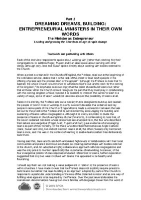 Each of the interview respondents spoke about working with (rather than working for) their congregations. In addition Roger, Rupert and Dan also spoke about working with other clergy, although only Jane and Susan spoke directly about working with bodies external to the Church…