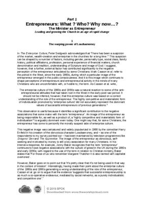In The Enterprise Culture, Peter Sedgwick acknowledges that ‘There has been a suspicion of the market, wealth-creation and enterprise in the churches for a long time.’4 This suspicion can be shaped by a number of factors, including gender, personality type, social class, family