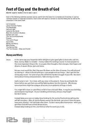 Each of the following sketches (scenes) can be used to form the basis for a complete act of worship or used as individual scenes on separate occasions. Each scene will require a narrator to read the linking text as well as the characters in the scene itself.