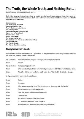 Each of the following sketches (scenes) can be used to form the basis for a complete act of worship or used as individual scenes on separate occasions. Each scene will require a narrator to read the linking text as well as the characters in the scene itself.