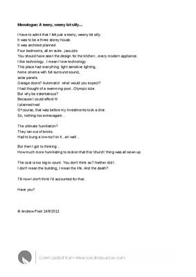 Monologue: A teeny, weeny bit silly…