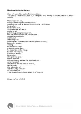 Monologue/meditation: Lament