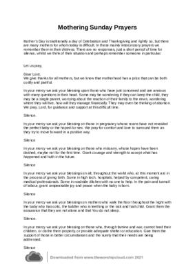 These intercessory prayers focus on Mothers in a variety of difficult circumstances, asking for God's comfort and help.