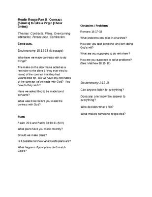 A Bible Study which relies heavily on discussion rather than leading. Using the film 'Moulin Rouge' as a starting point and then looking at a variety of passages (which can be obtained from the web in a variety of different translations) There are questions to help start discussion - some are harder than others.