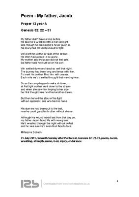 31 July 2011, Seventh Sunday after Pentecost, Genesis 32: 22-31, poem, Jacob,