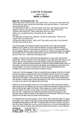 Taken from Lent for Everyone Mark Year B