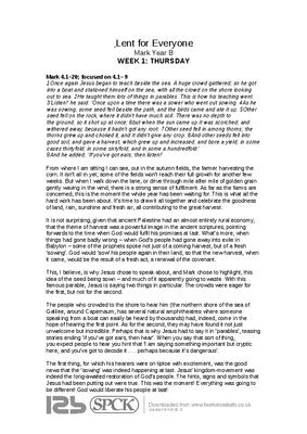 Taken from Lent for Everyone Mark Year B