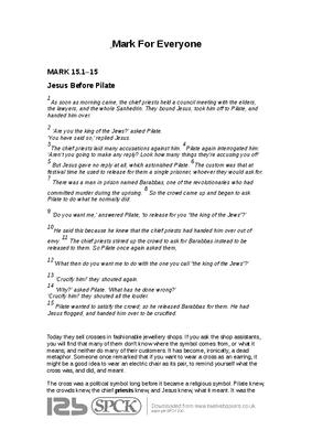 The cross was a political symbol long before it became a religious symbol. Pilate knew, the crowds knew, the chief priests knew, and Jesus knew, what it meant. It was the ultimate symbol of Roman power. It said, ‘We are in charge here, and this is what happens to people who get in our way.’ They had crucified thousands of rebel Jews when Jesus was a boy in Galilee. They would crucify thousands more when they took Jerusalem in AD 70 – so many that they got bored, and experimented with hanging people up in different positions and attitudes, until they ran out of wood. And in between those two devastating repressions of revolts they crucified lots of people for a variety of reasons, often on small pretexts...