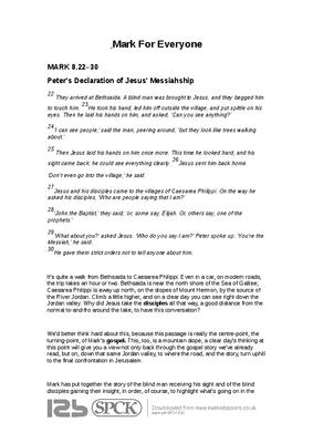 We’d better think hard about this, because this passage is really the centre-point, the turning-point, of Mark’s gospel. This, too, is a mountain slope; a clear day’s thinking at this point will give you a view not only back through the gospel story we’ve already read, but on, down that same Jordan valley, to where the road, and the story, turn uphill to the final confrontation in Jerusalem...